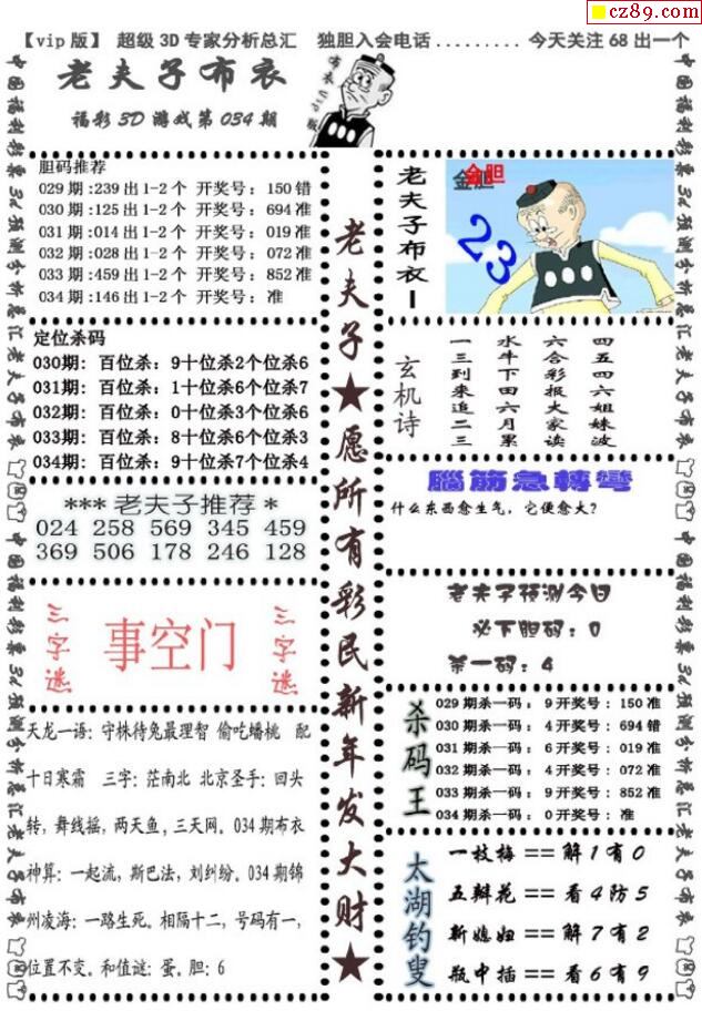 老夫子布衣2021034期3d图谜