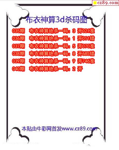 布衣神算杀码2021040期3d图谜(原创)