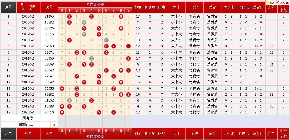第041期体彩P3历史同期对比