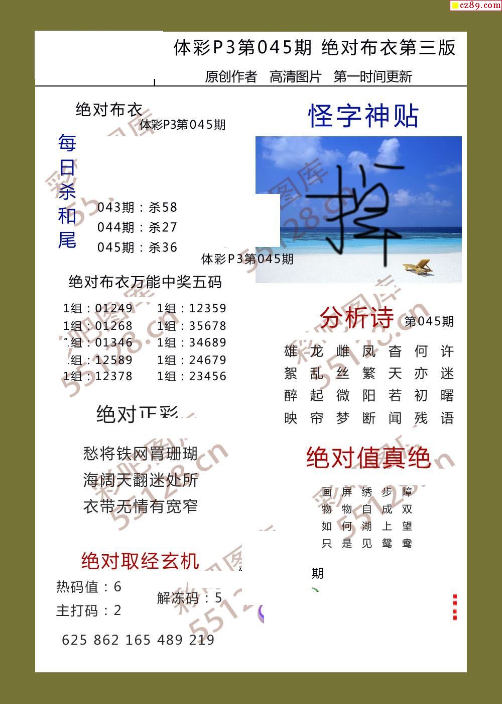 绝对布衣045期体彩p3图谜