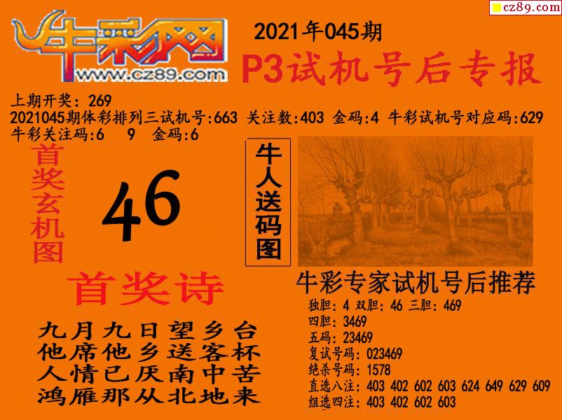 2021045期p3试机号后牛彩网专报