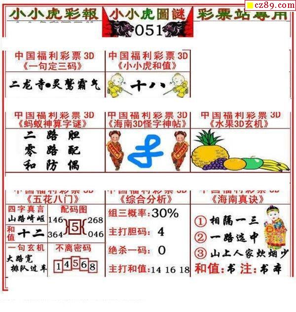 小小虎彩报2021051期3d图谜