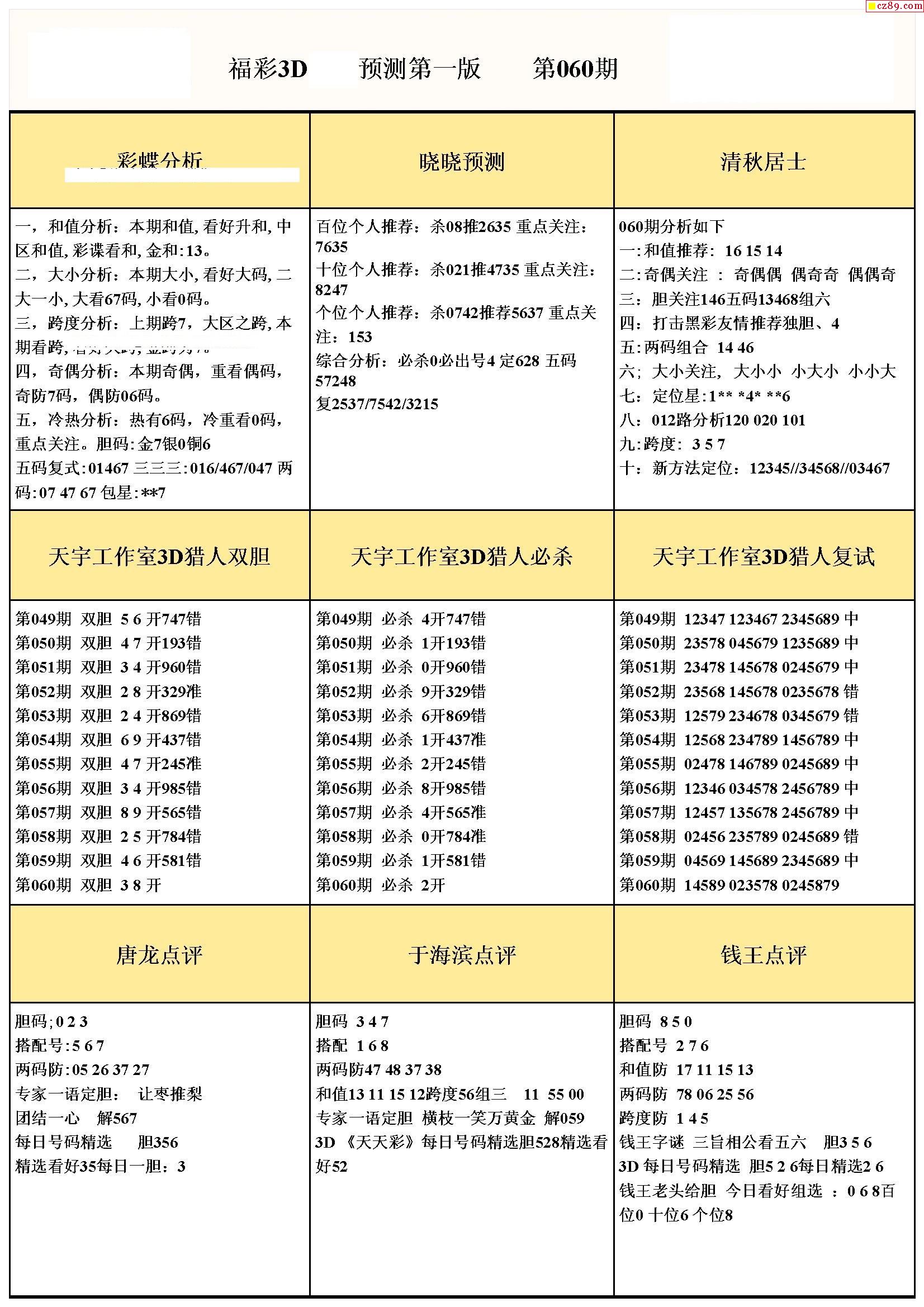 牛彩版3D预测彩报图21年060期打印版