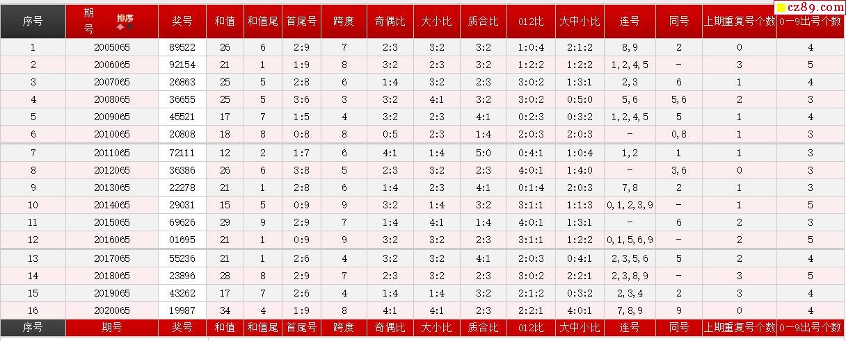 第065期体彩P5历史同期对比