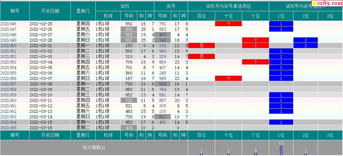 21年065期福彩3D试机号走势图表分析