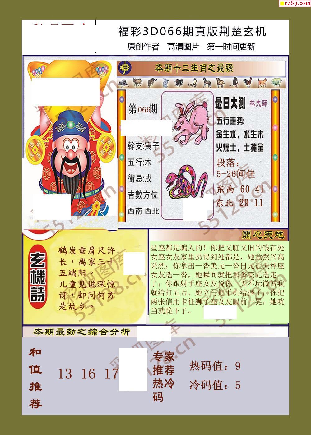2020福彩3d066期真版荆楚玄机彩报