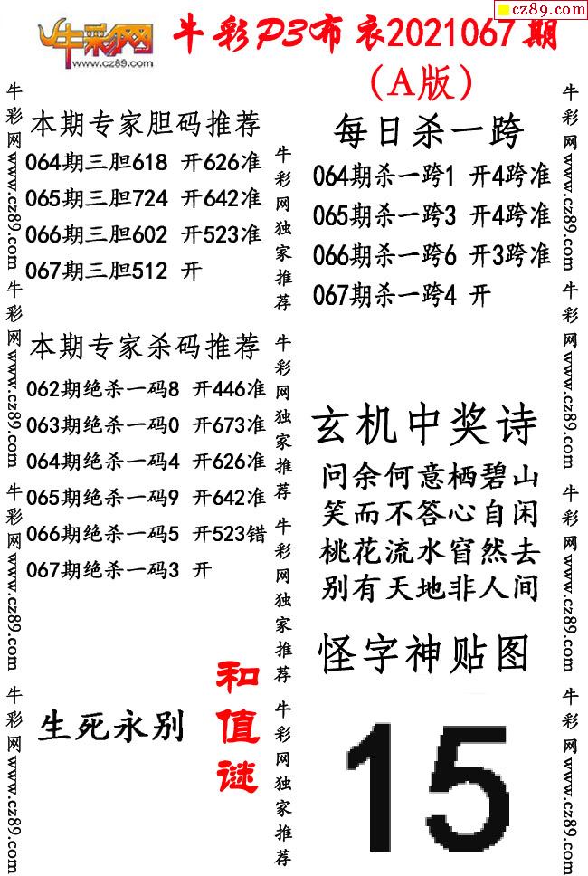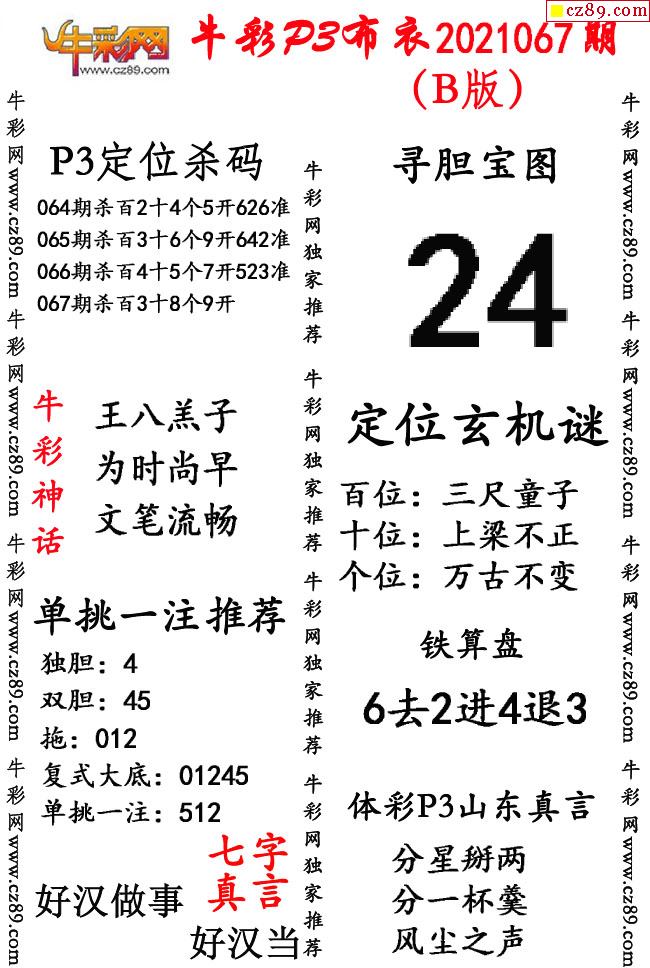 牛彩P3布衣21年067期AB版图谜(独家发布)