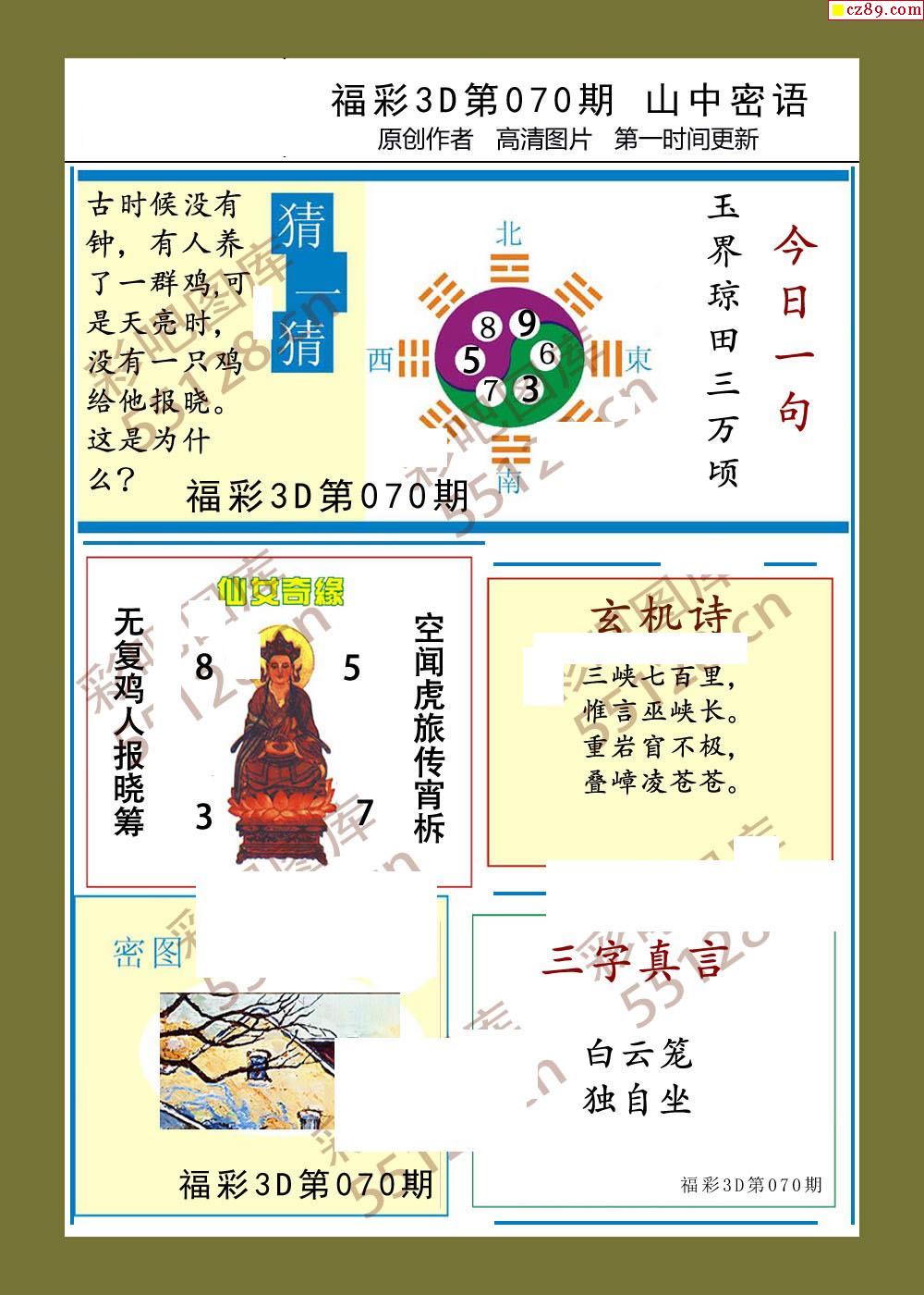 福彩3d21年070期山中密语彩报