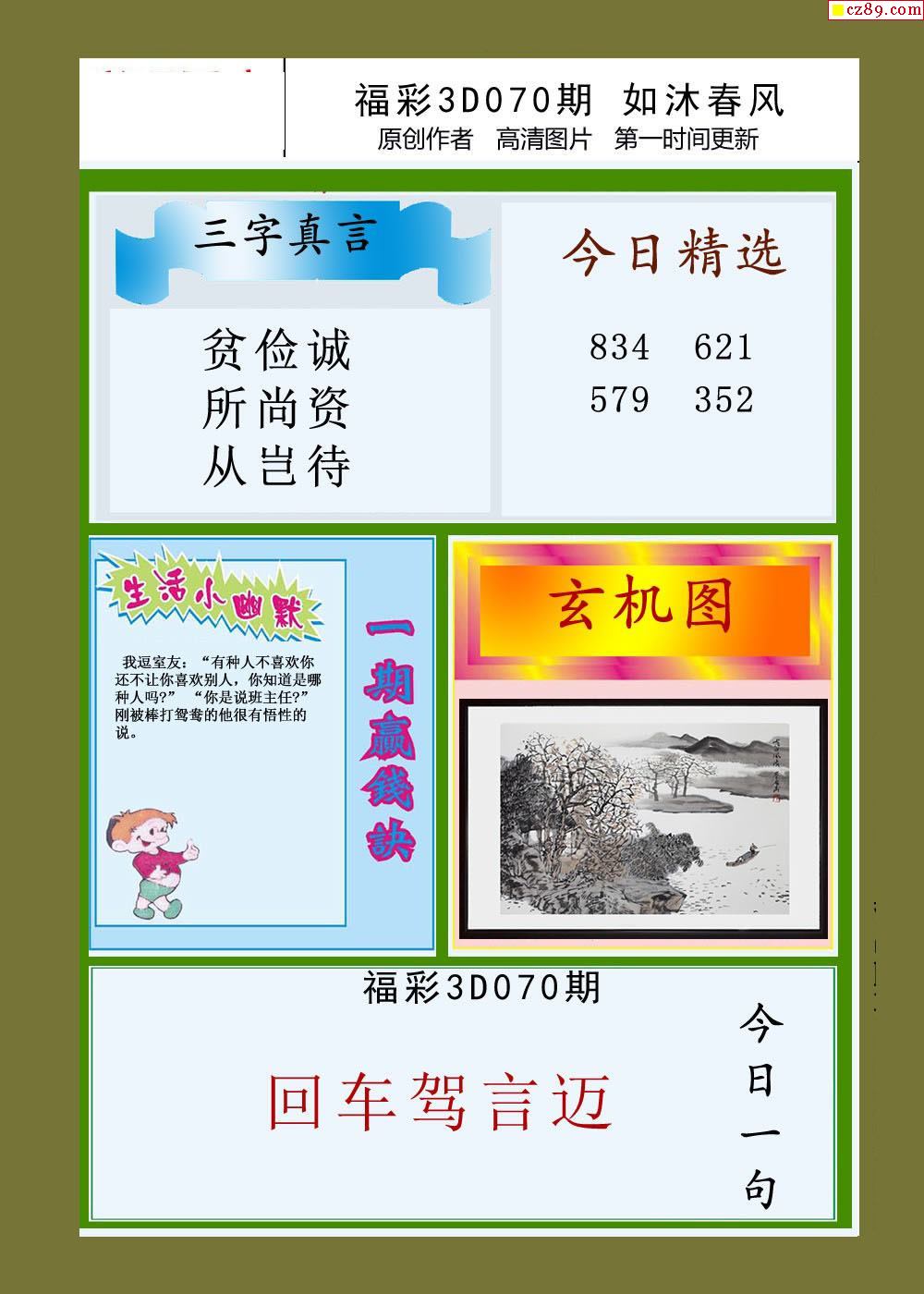 如沐春风21年070期福彩3d图谜