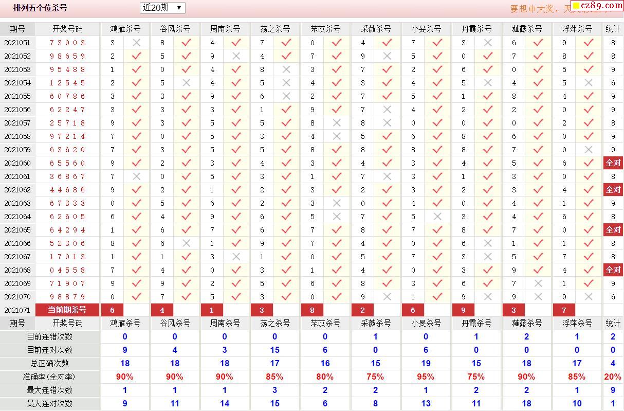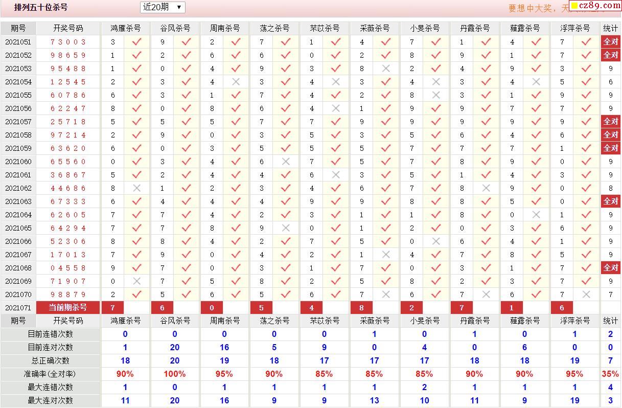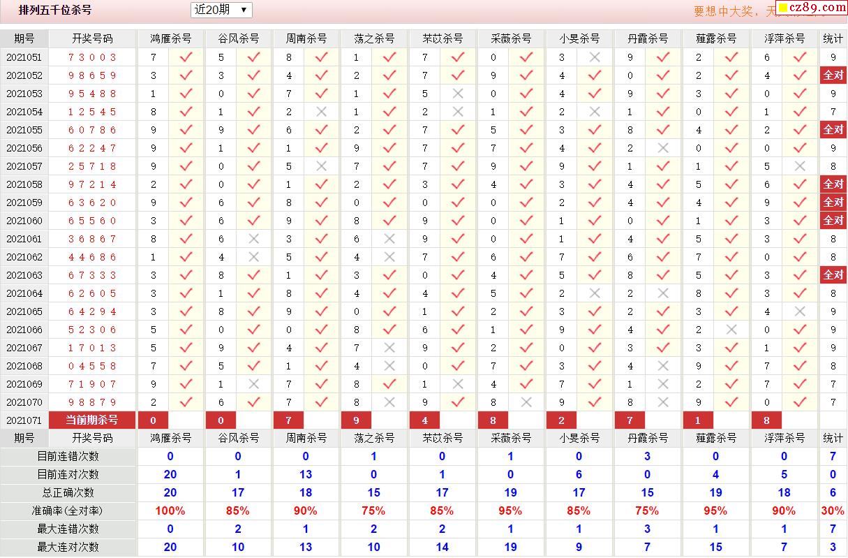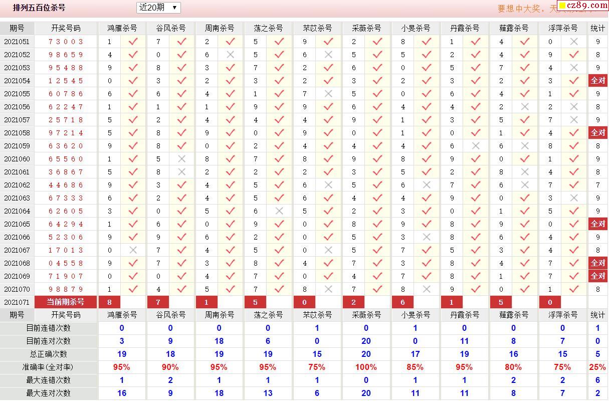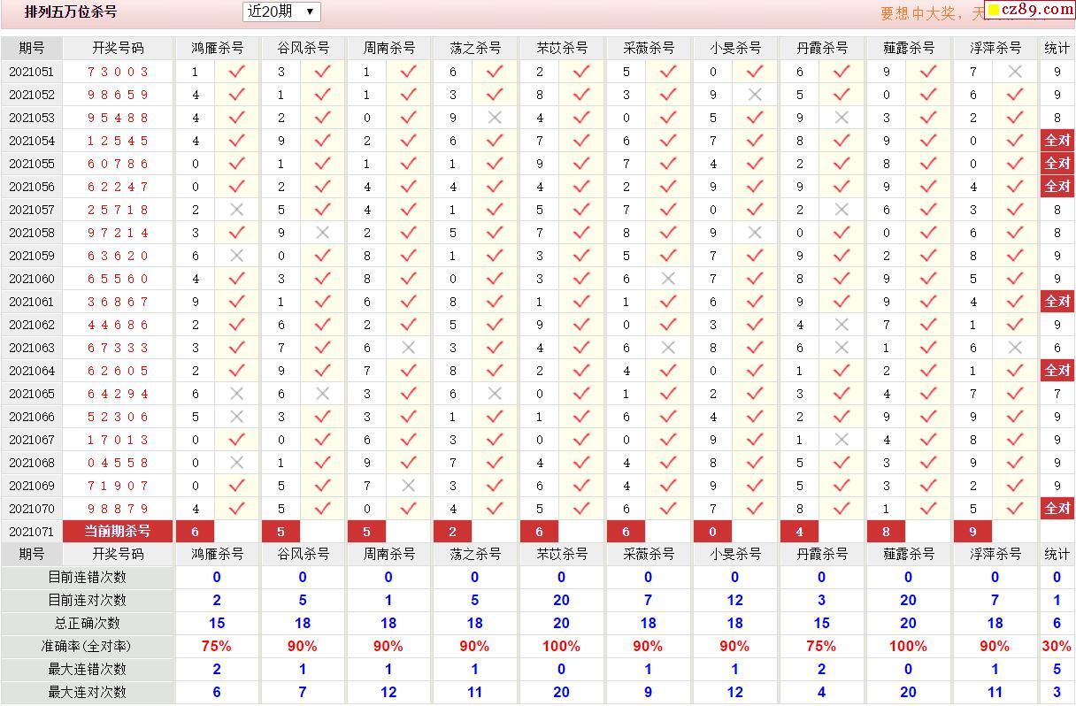 071期彩票专家体彩P5杀号推荐图表