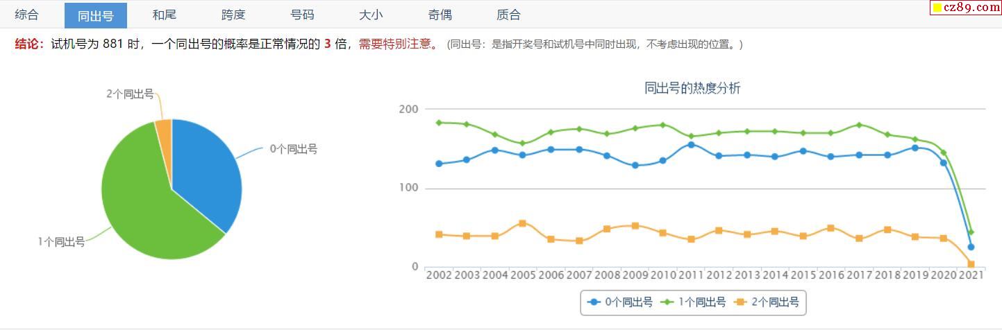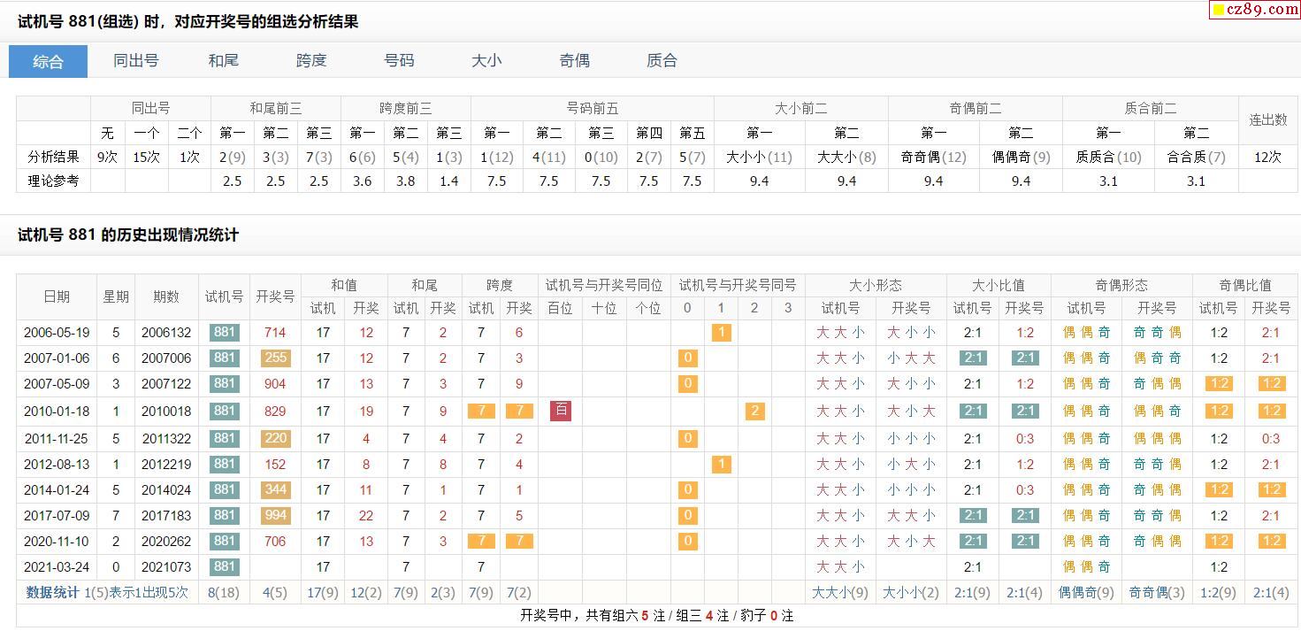 262期福彩3D试机号881对应开奖号的组选分析结果