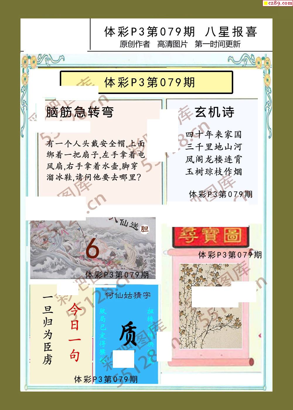 八星报喜079期体彩p3图谜