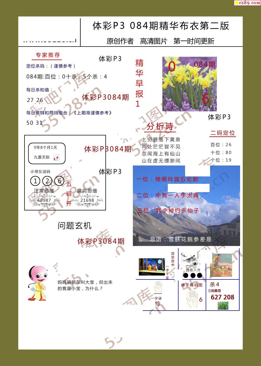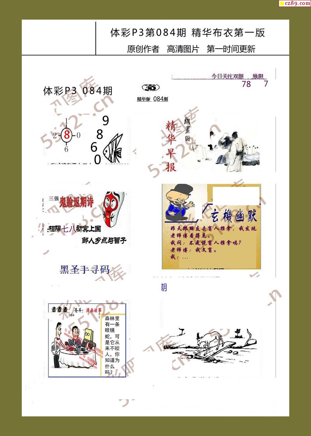 精华布衣彩报084期体彩p3图谜