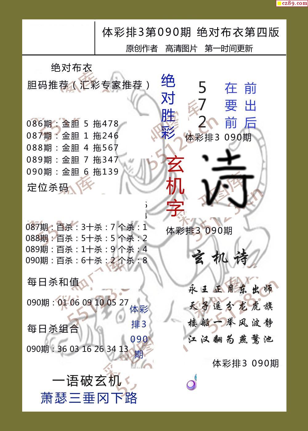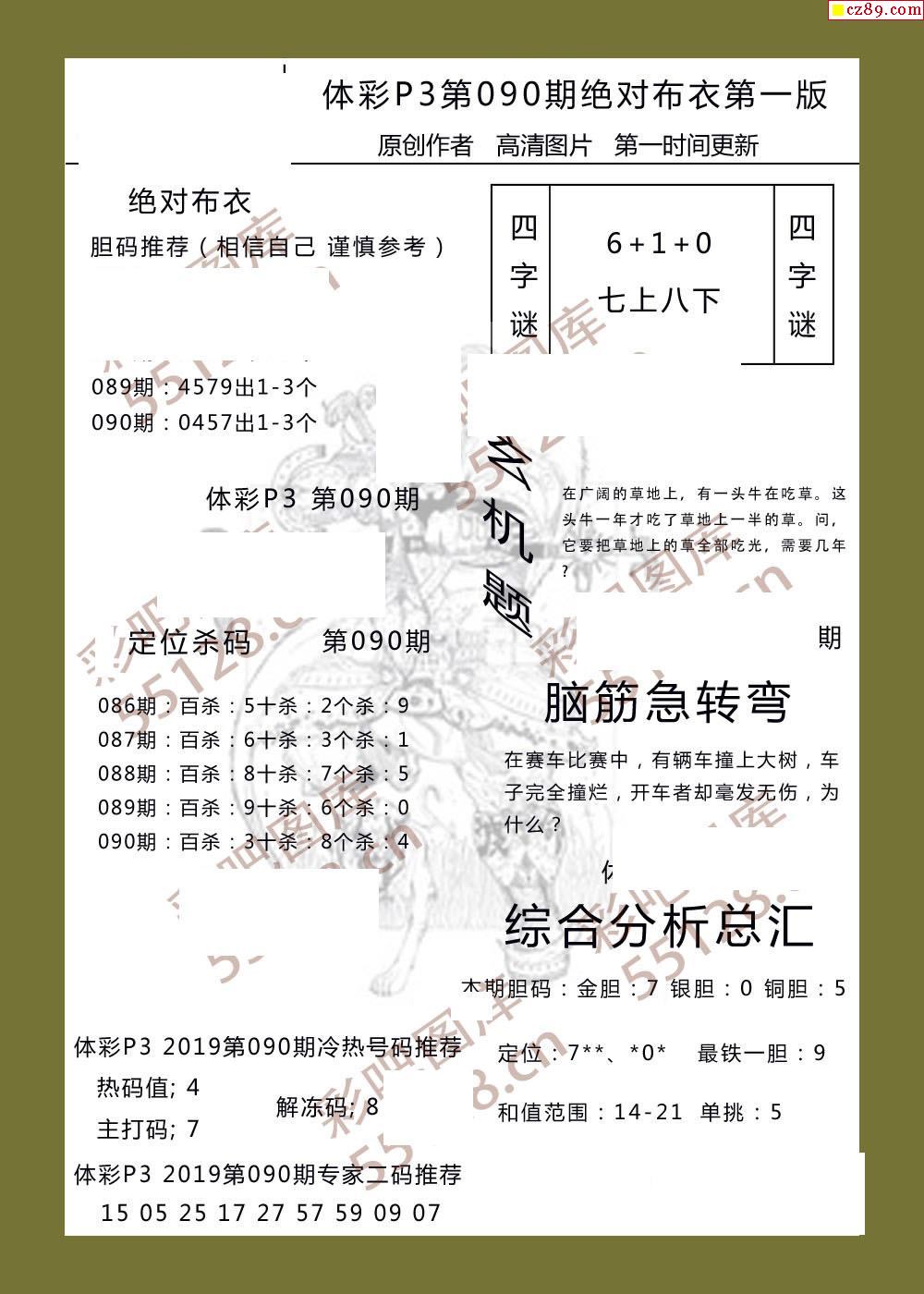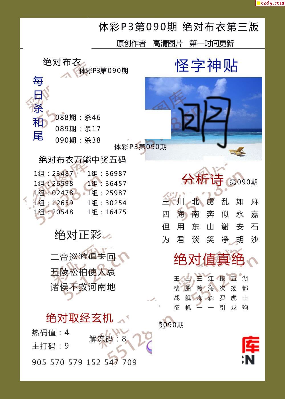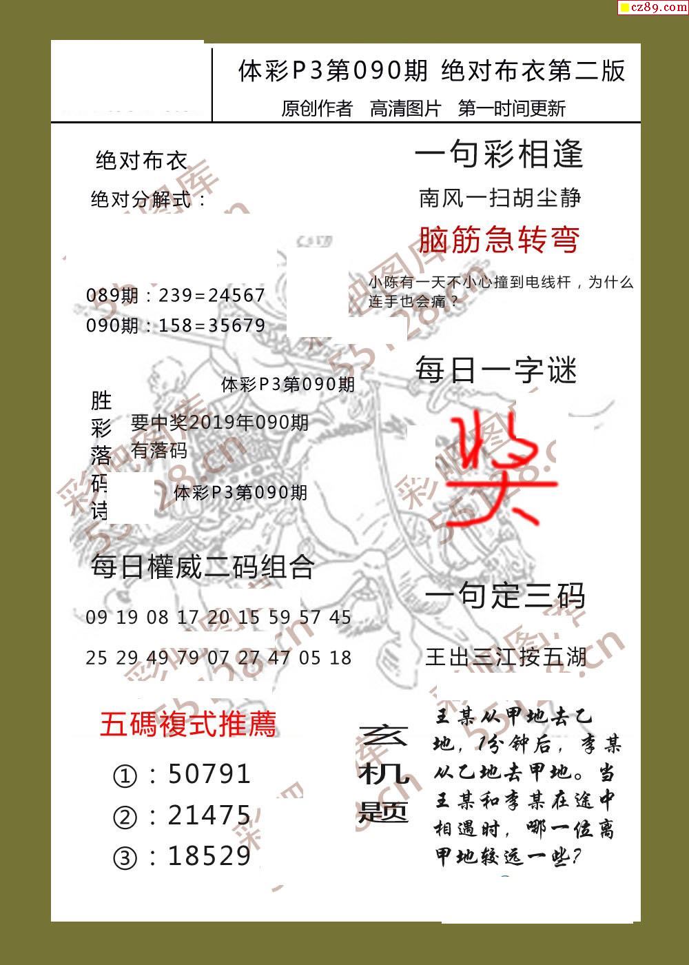 绝对布衣090期体彩p3图谜