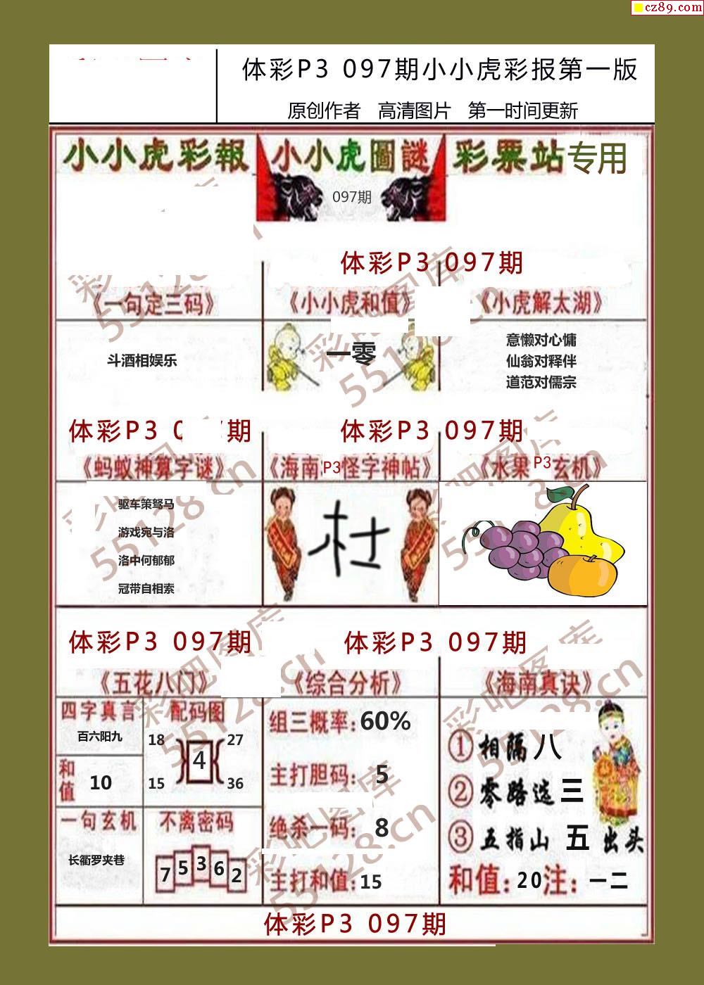 2025年341期牛彩网体彩P3画迷图谜汇总分享