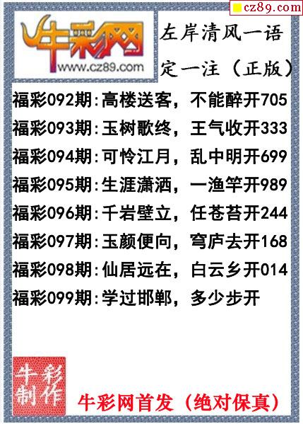 25年340期牛彩网福彩3D字谜汇总大全【晚间版】