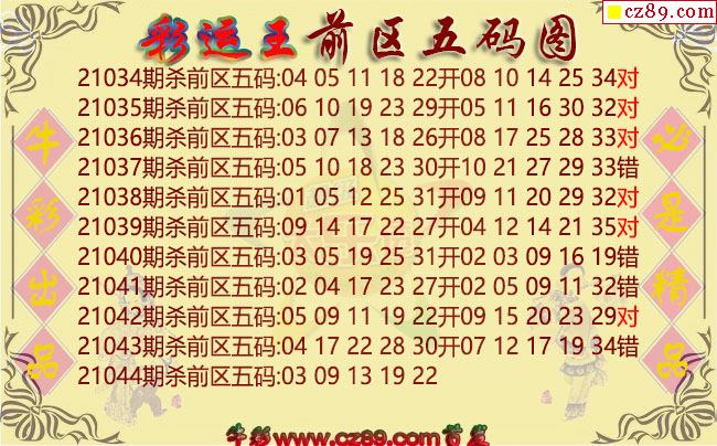 大乐透043期彩运王前区五码图谜