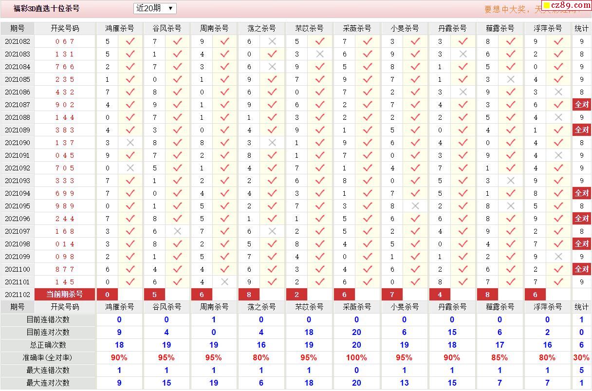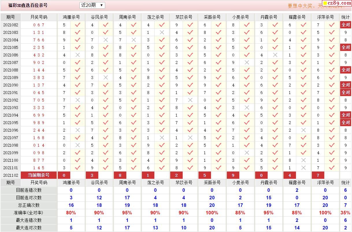 26年089期彩宝贝专家福彩3D杀号定码图表