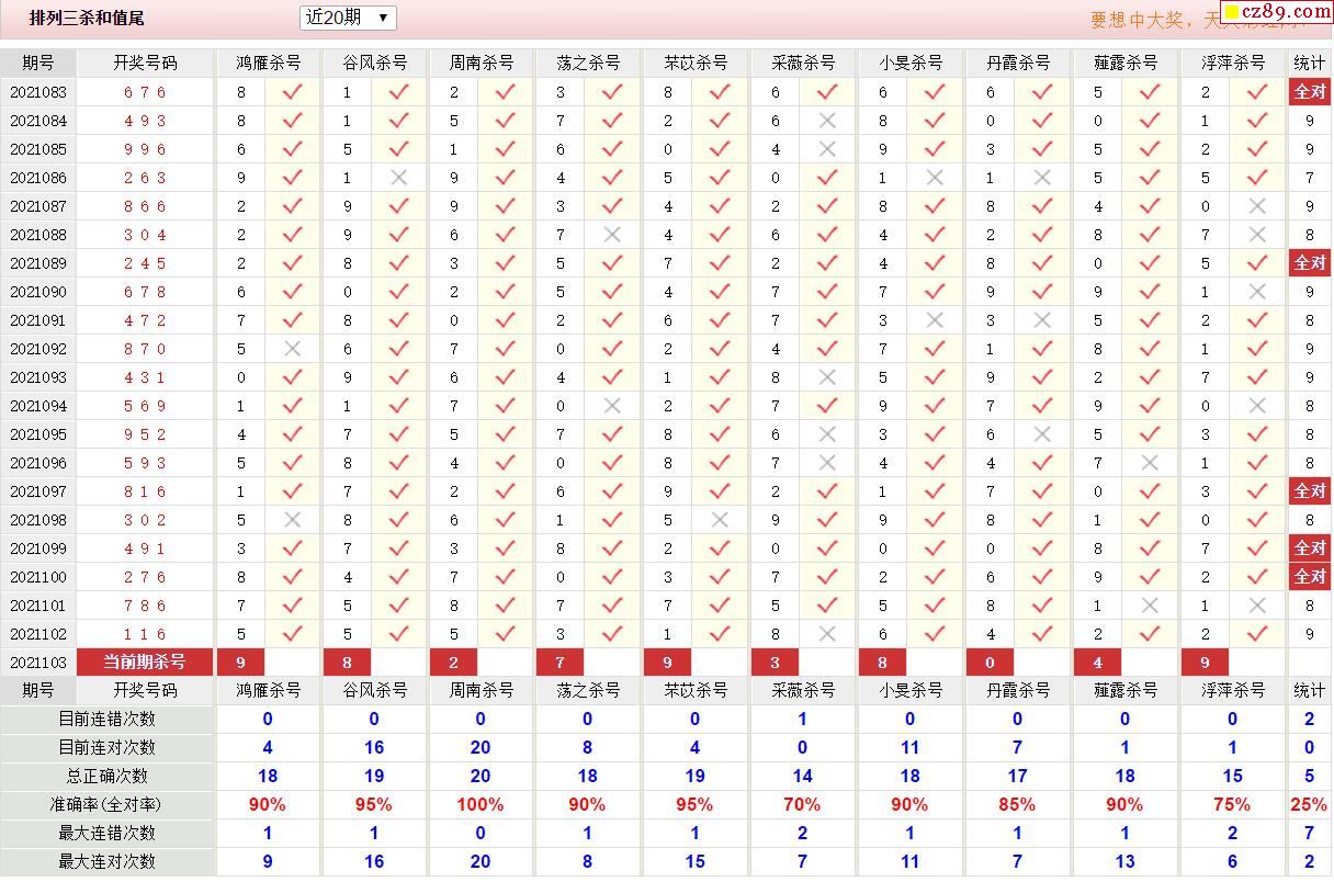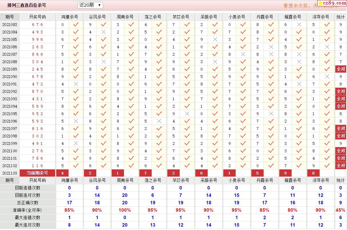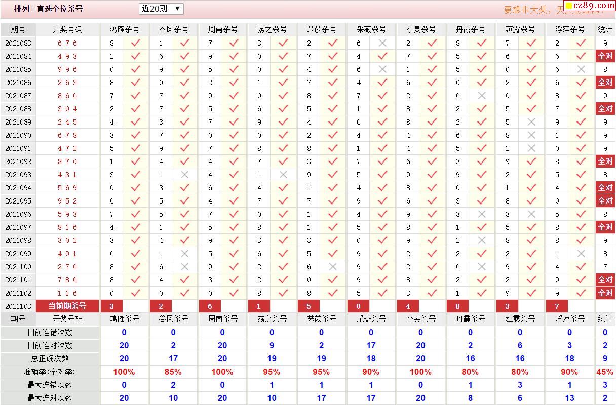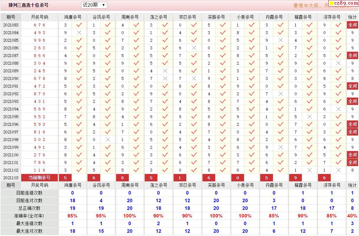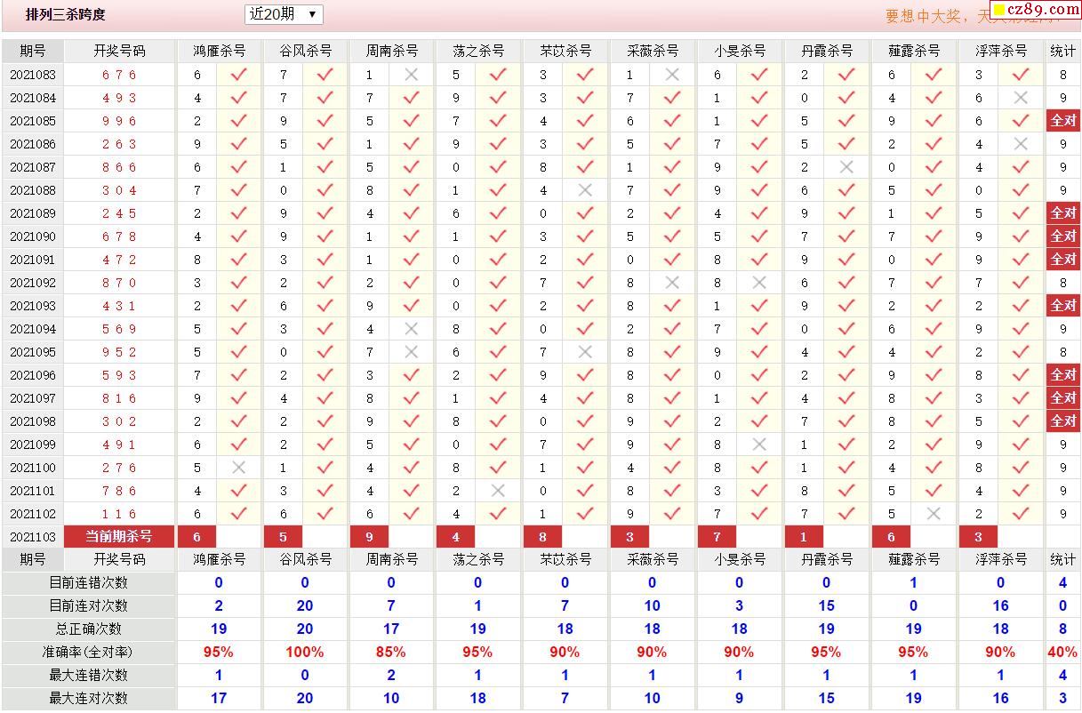 103期彩票专家体彩P3杀号推荐图表