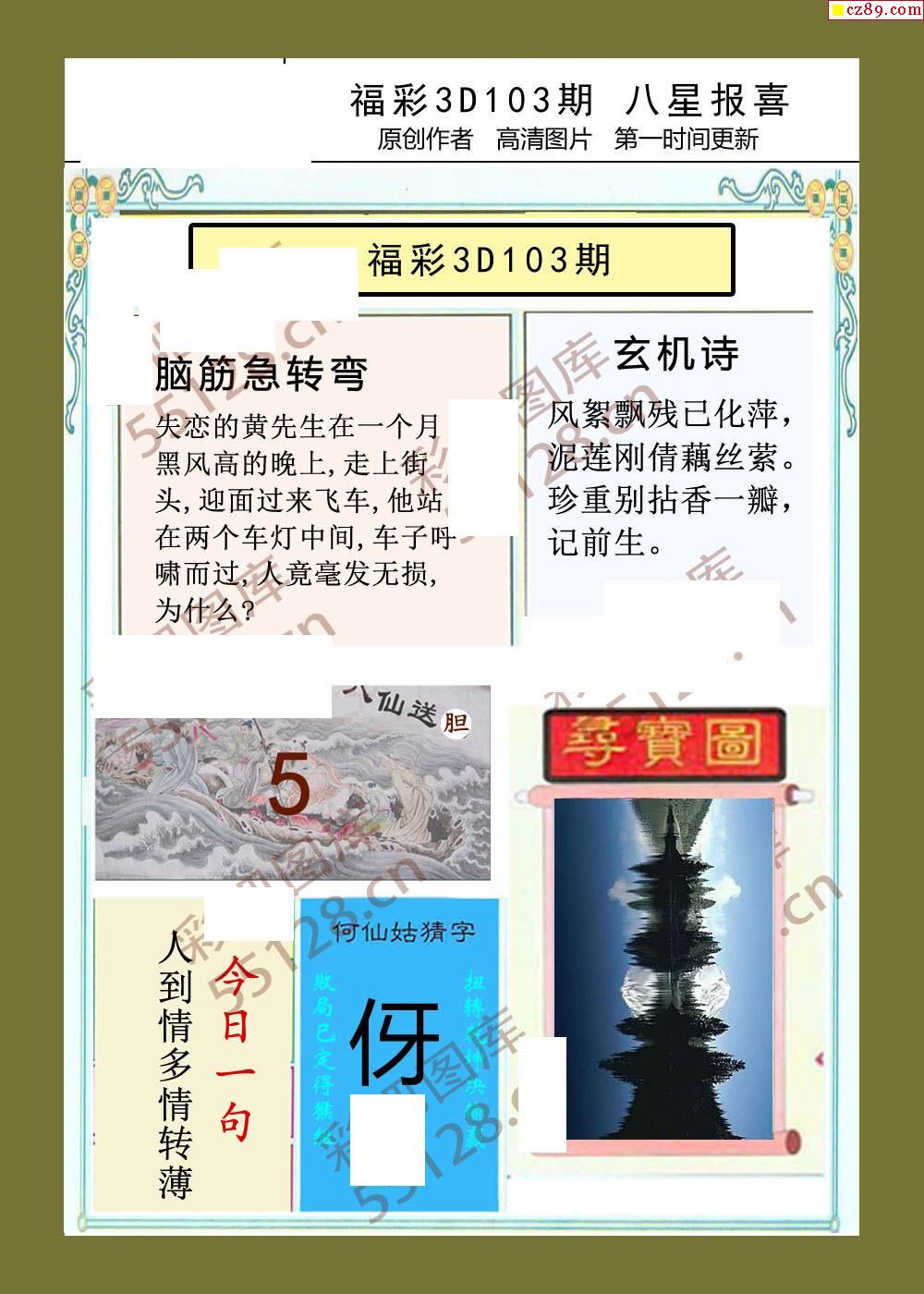 八星报喜21年103期福彩3d画谜