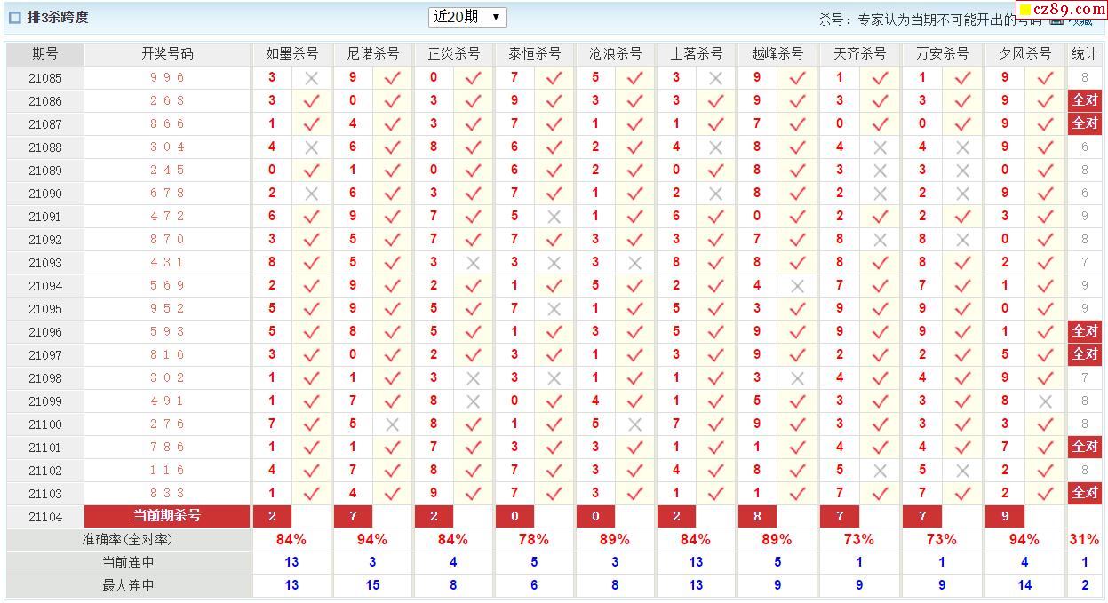 25年339期彩宝贝专家体彩P3杀号定码图表