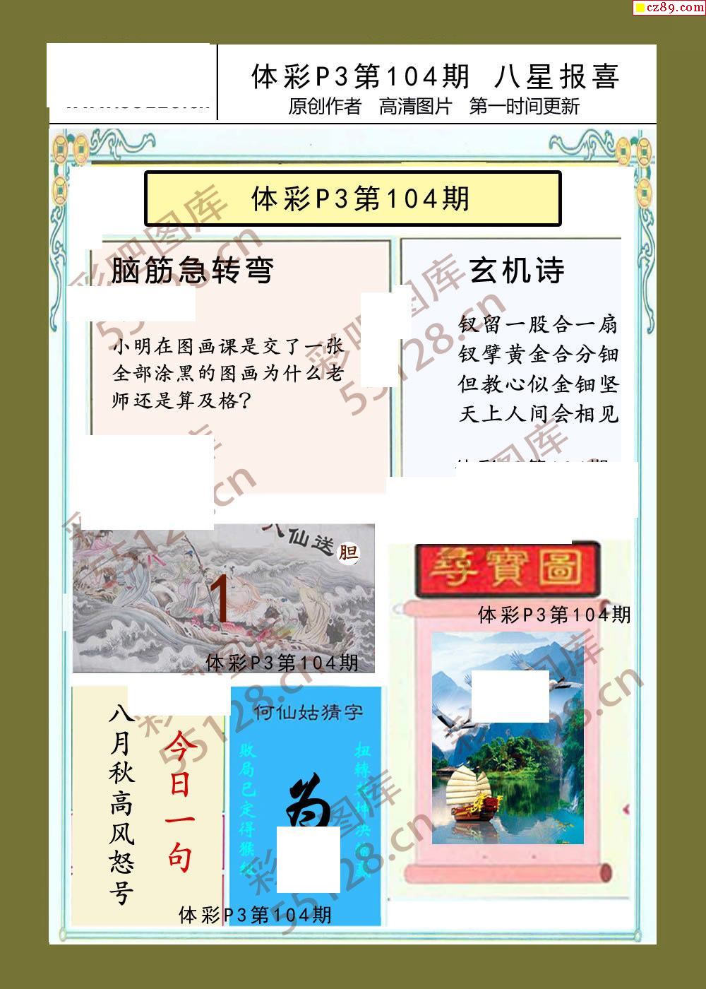 八星报喜104期体彩p3图谜