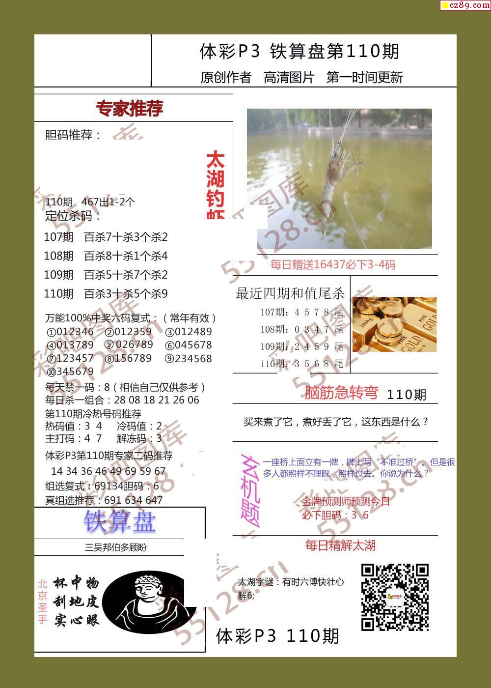 铁算盘110期体彩p3图谜