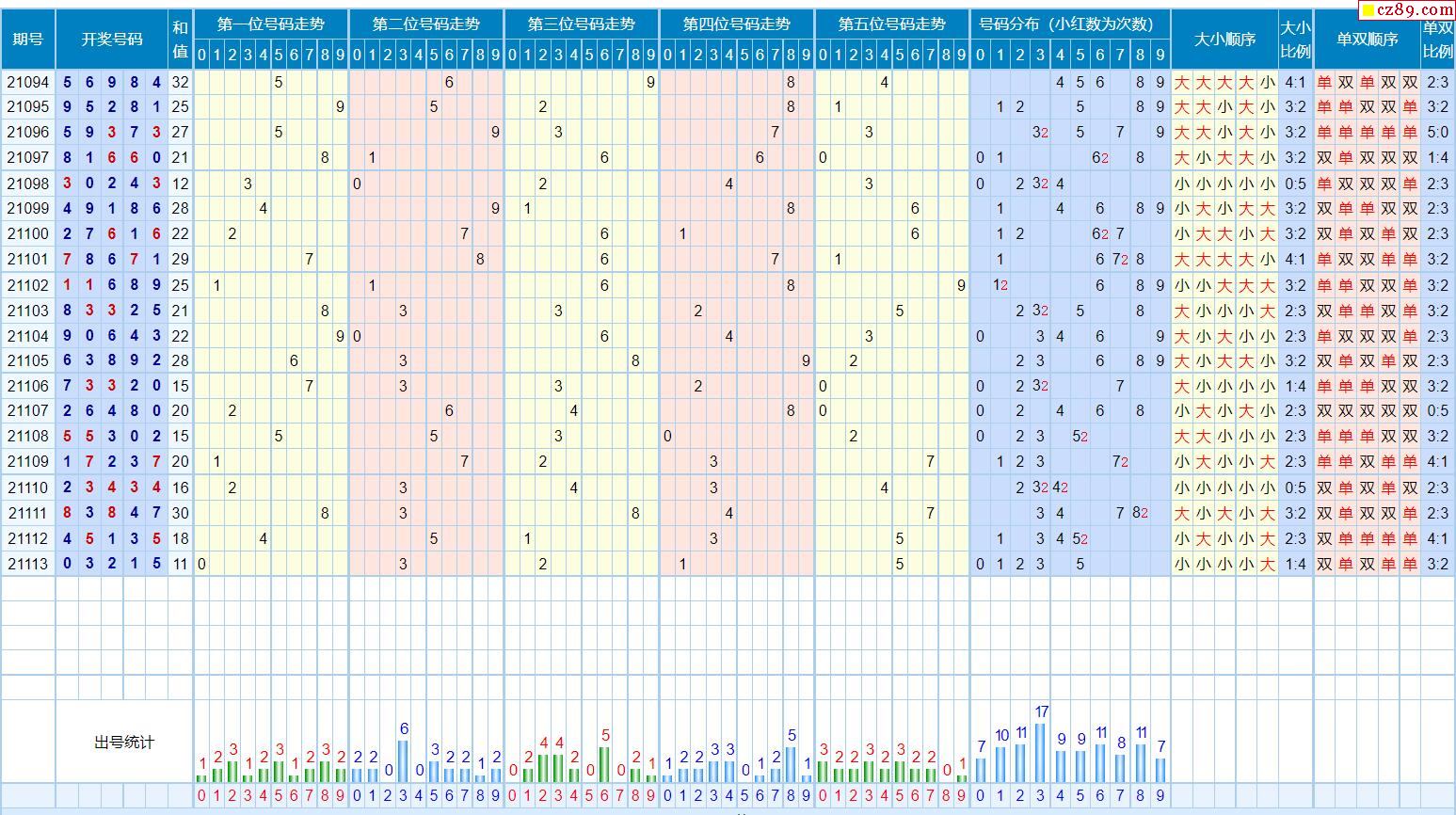 114期体彩排列5近期历史号码图表