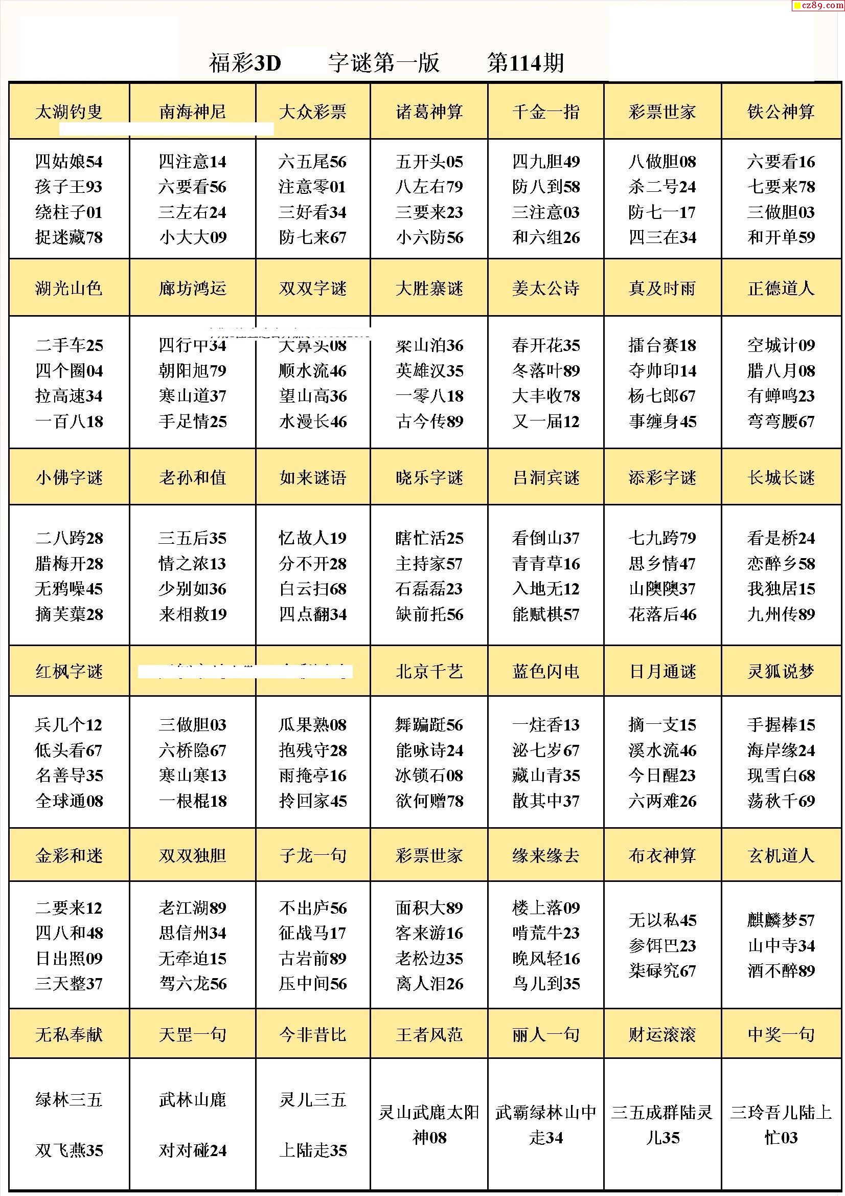 牛彩版3D字谜彩报图21年114期打印版