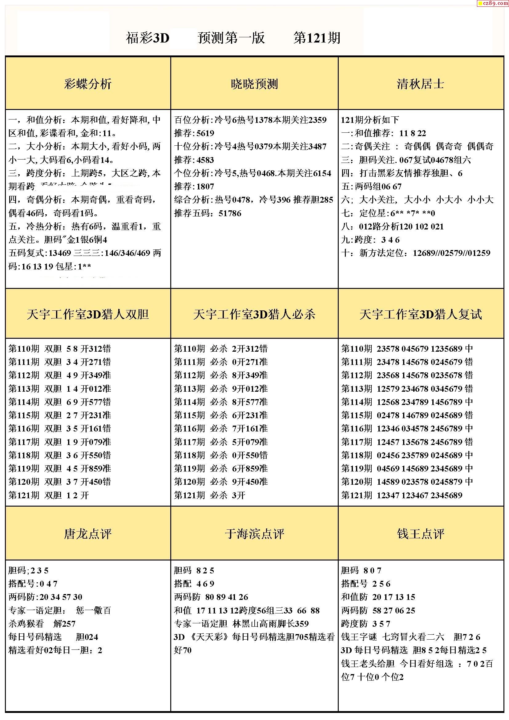 牛彩版3D预测彩报图21年121期打印版