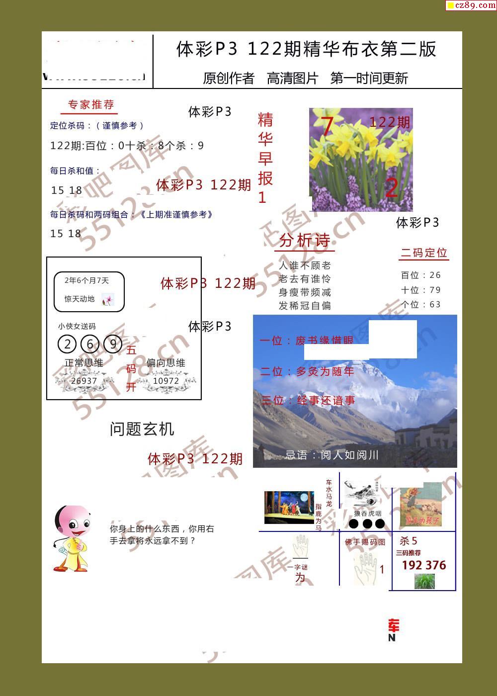 精华布衣彩报122期体彩p3图谜