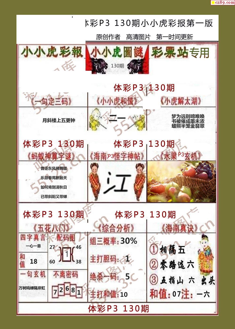 小小虎彩报130期体彩p3图谜