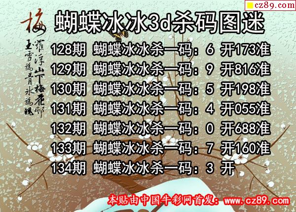 蝴蝶冰冰杀码2021134期3d图谜(原创)
