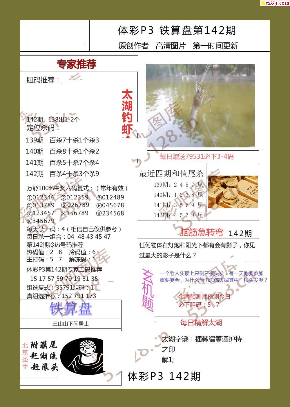 铁算盘142期体彩p3图谜