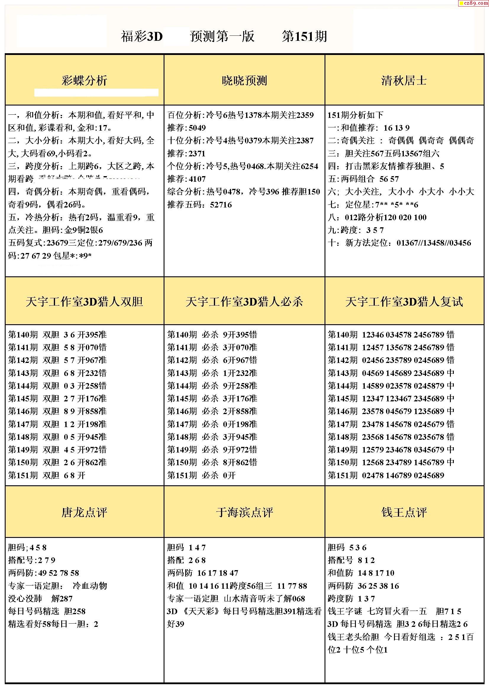 牛彩版3D预测彩报图21年151期打印版
