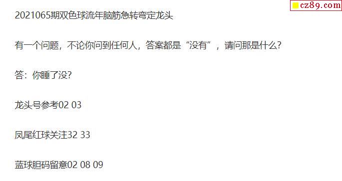 流年21年065期双色球动脑筋急转弯龙头字谜