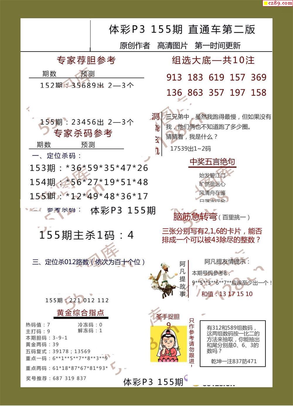 2025年328期牛彩网体彩P3画迷图谜汇总分享