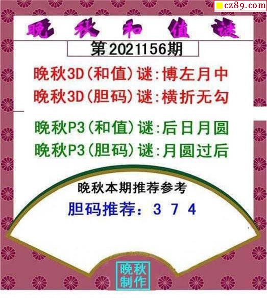 晚秋和值谜2021156期3d图谜