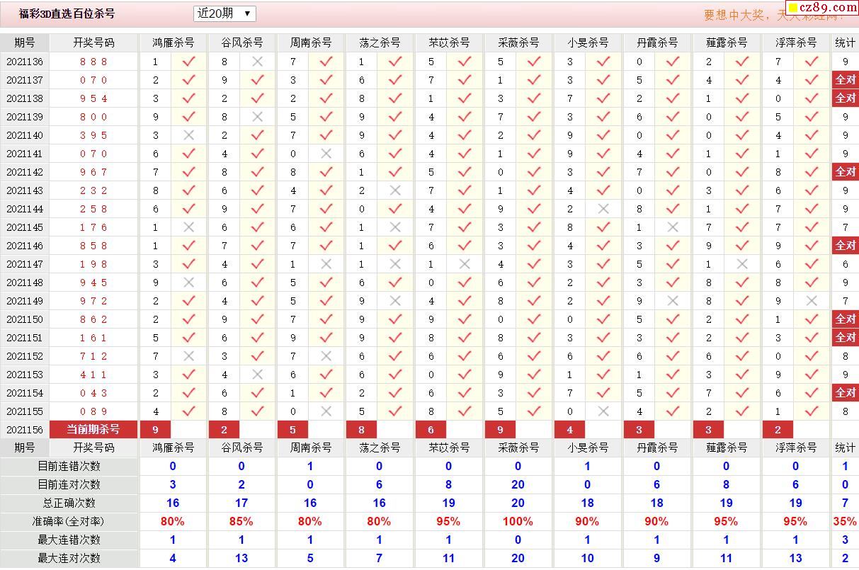 26年045期彩宝贝专家福彩3D杀号定码图表