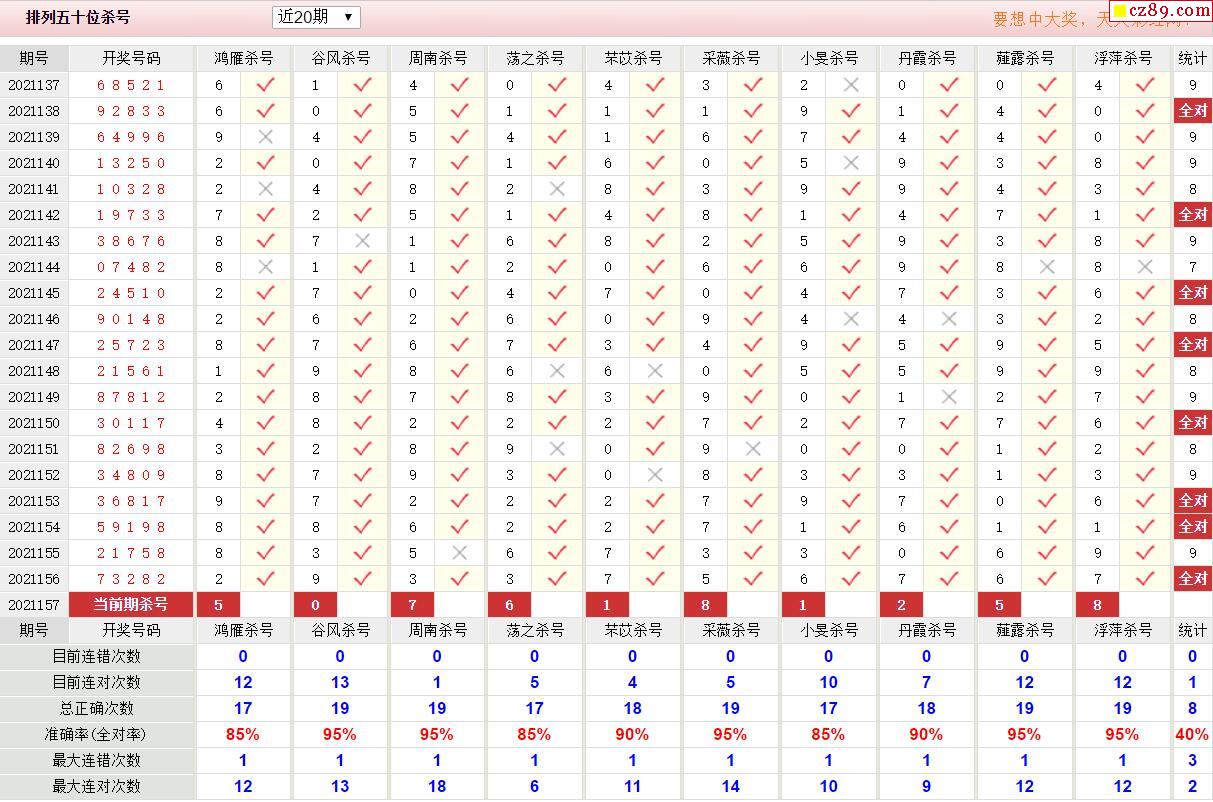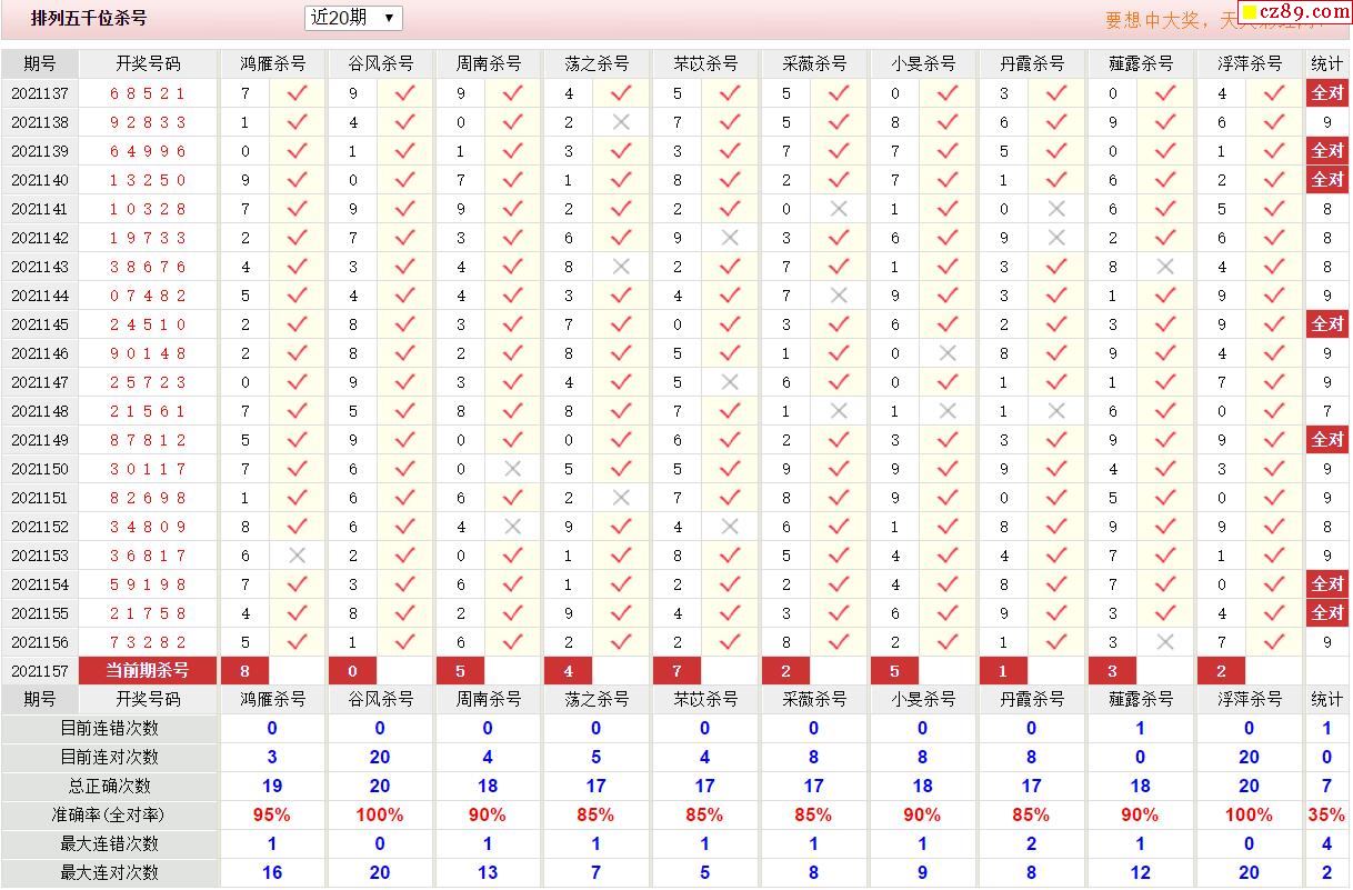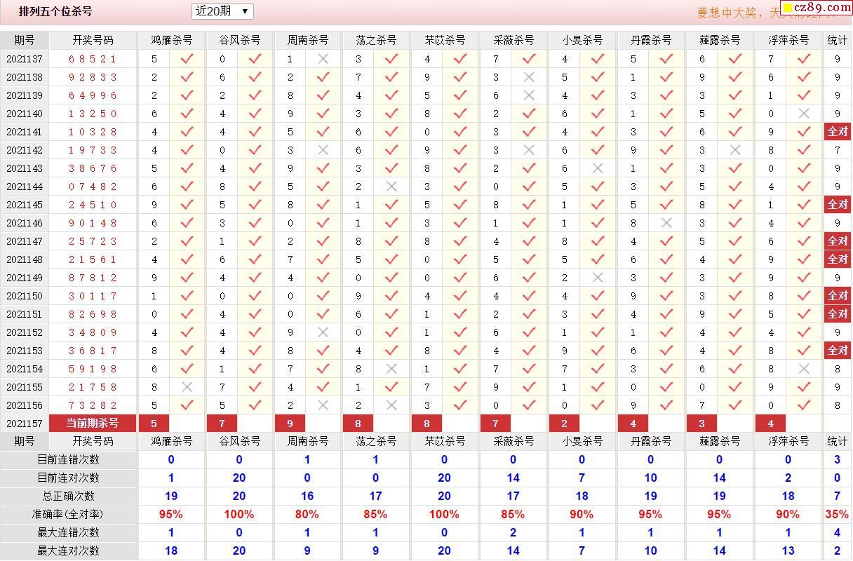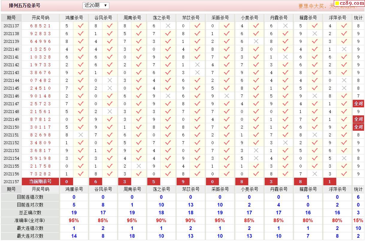 157期彩票专家体彩P5杀号推荐图表