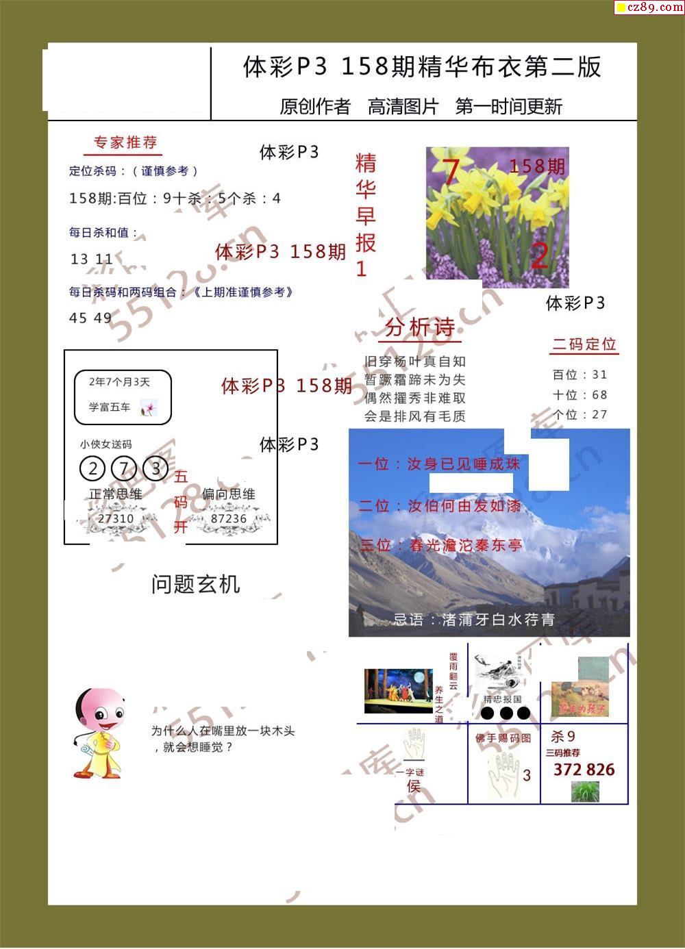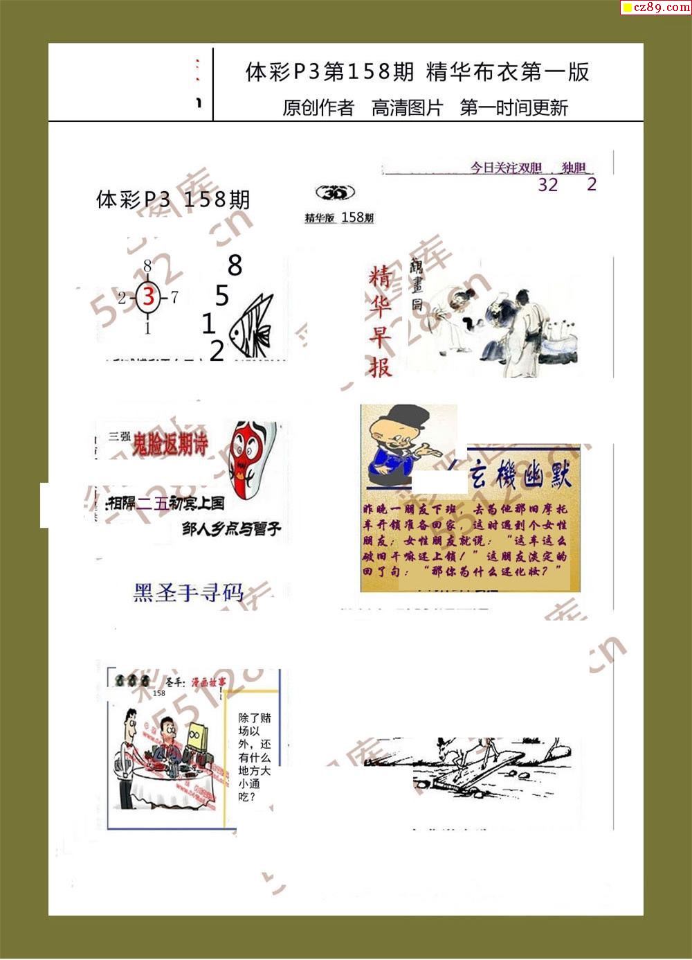 精华布衣彩报158期体彩p3图谜