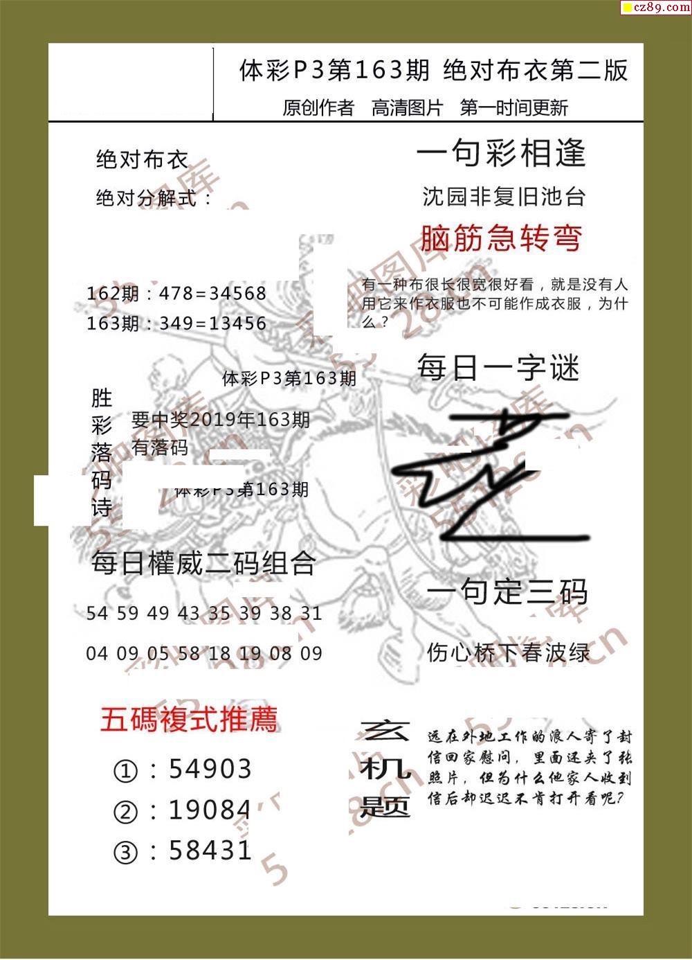 牛彩P3布衣25年341期AB版图谜(精华版)