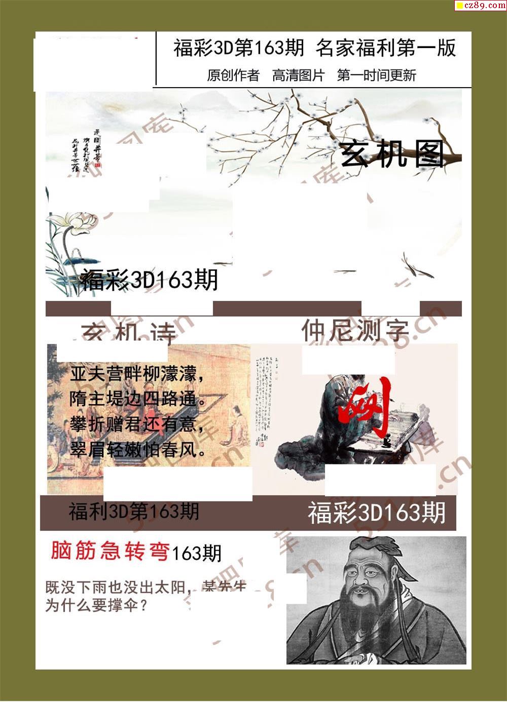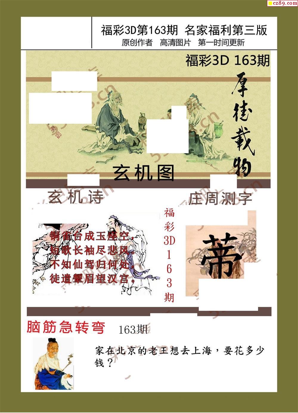 福彩名家福利彩票3d21年163期图谜