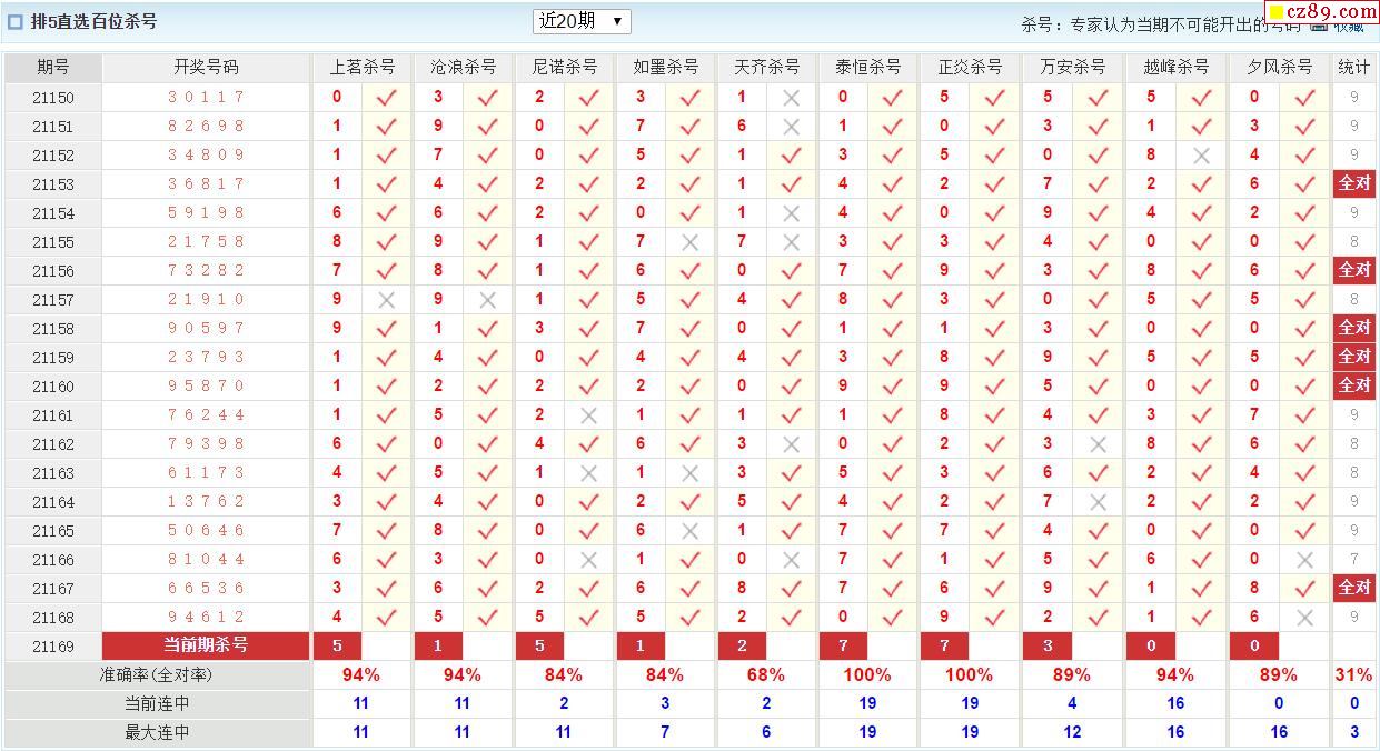 25年345期彩宝贝专家体彩P3杀号定码图表