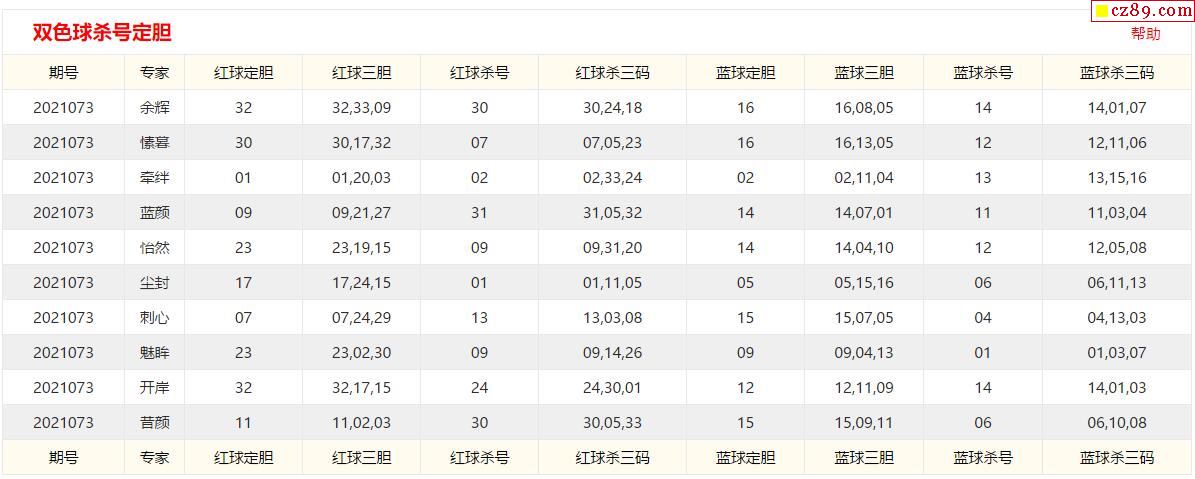 双色球073期 彩宝贝专家红蓝球杀号预测图表