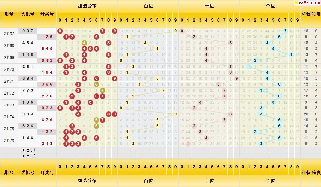 177期福彩3D试机号747对应开奖号的组选分析结果