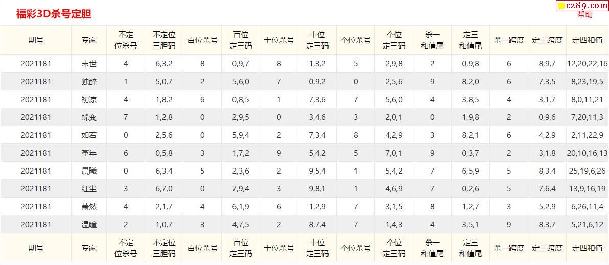 21年181期彩宝贝专家福彩3D杀号定码图表