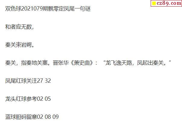 飘零21年079期双色球一句定凤尾