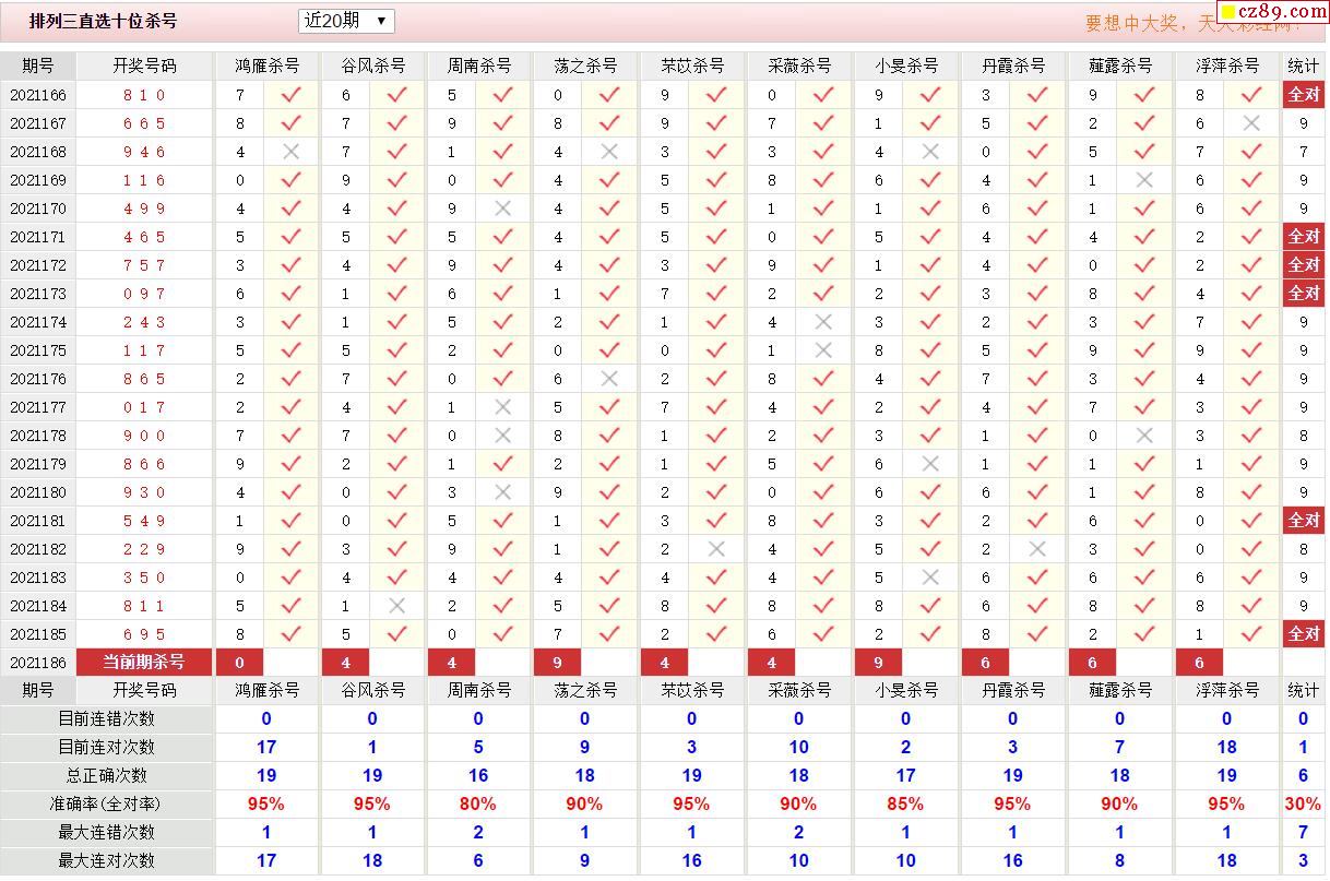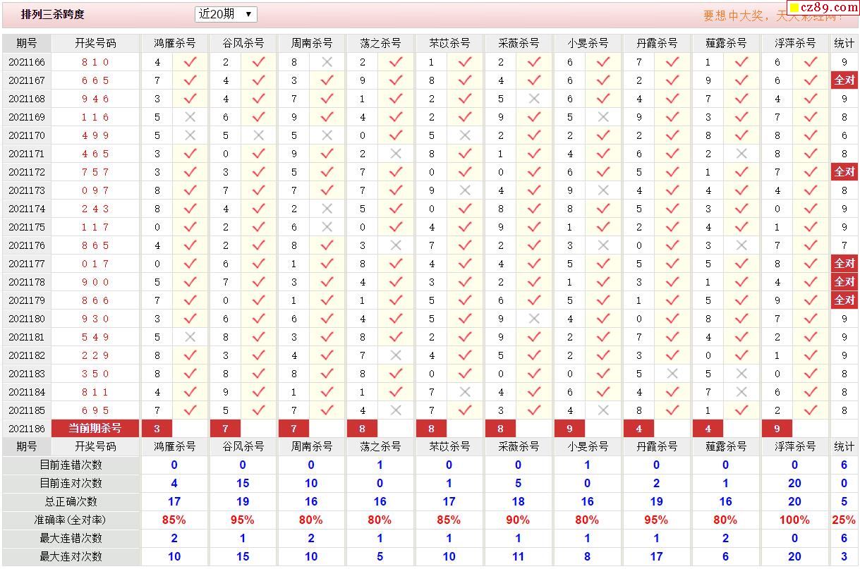 186期彩票专家体彩P3杀号推荐图表
