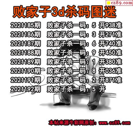 败家子杀码2021192期3d图谜(原创)